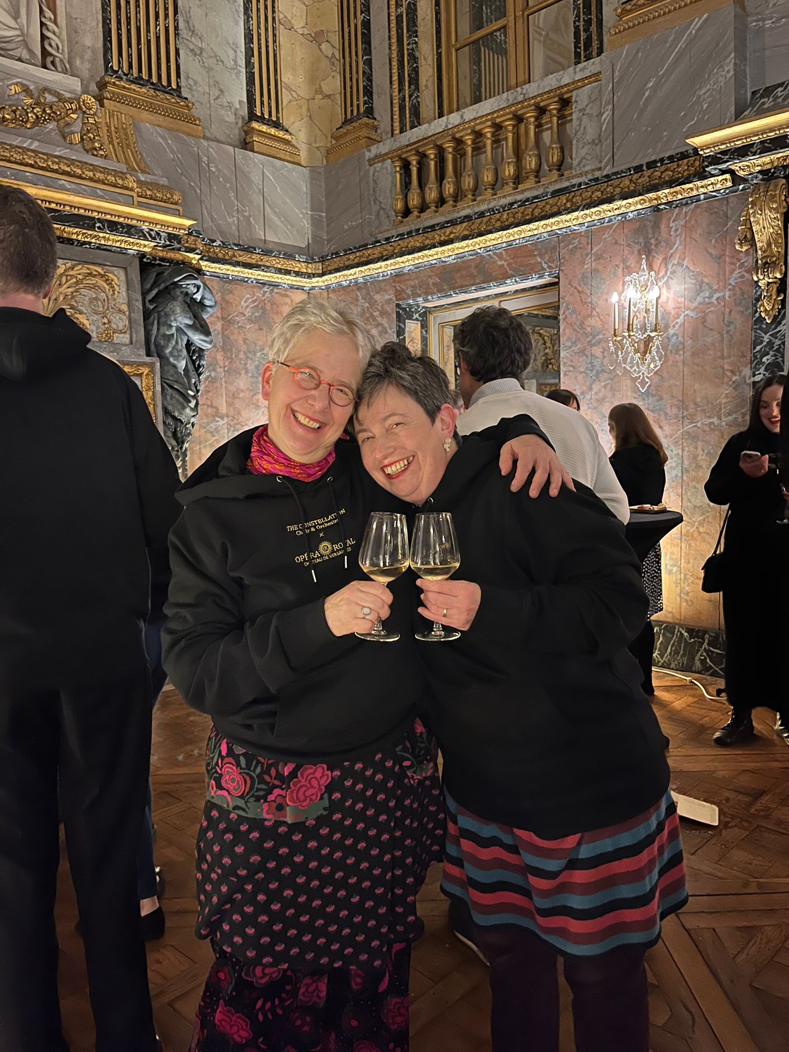 Foto: Mit Konzertmeisterin Kati Debrezeni beim Empfang im Chateau Versailles im Dezember 2024